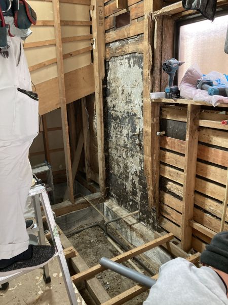 外壁のモルタルに割れが生じていたので、修繕を行いながら工事を進めました。