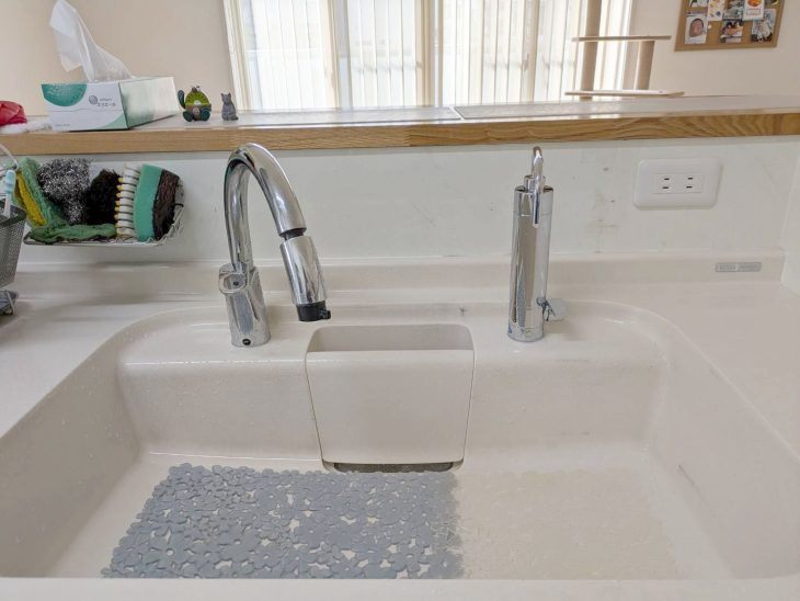 1年に1度、カートリッジを交換する必要があるのですが、このシンク下の収納を外して交換するのがなかなかの大仕事。