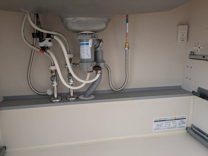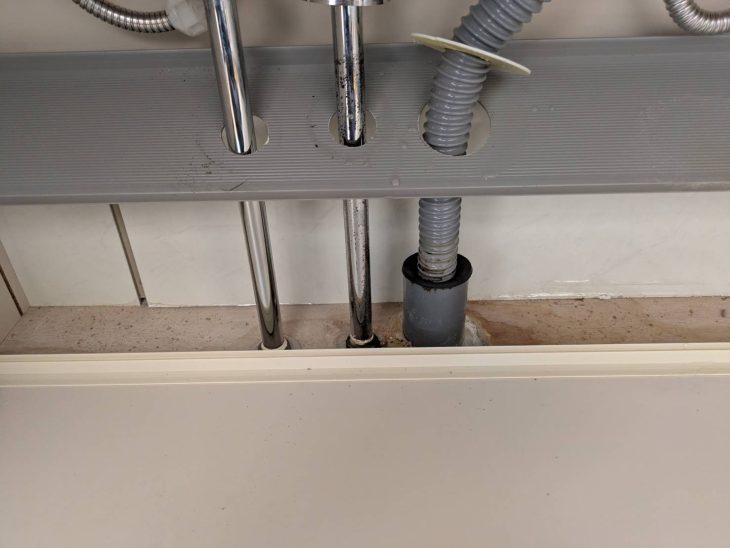 カートリッジを経由することなく、配水管を分岐させて、シンクの裏手に送るようにしました。