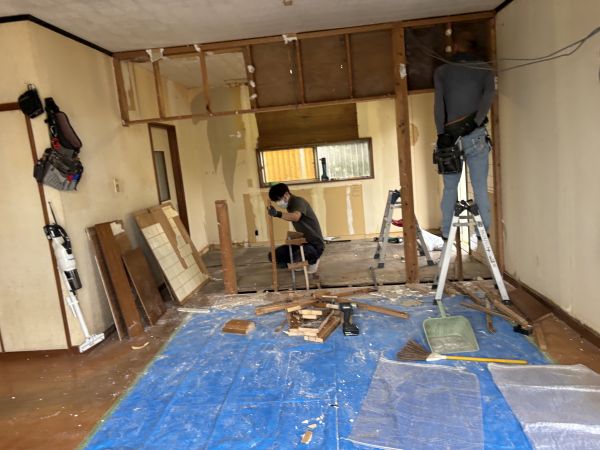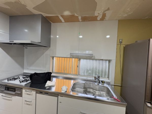 吊戸棚のあった下がり壁と壁側にあった袖壁も撤去します。